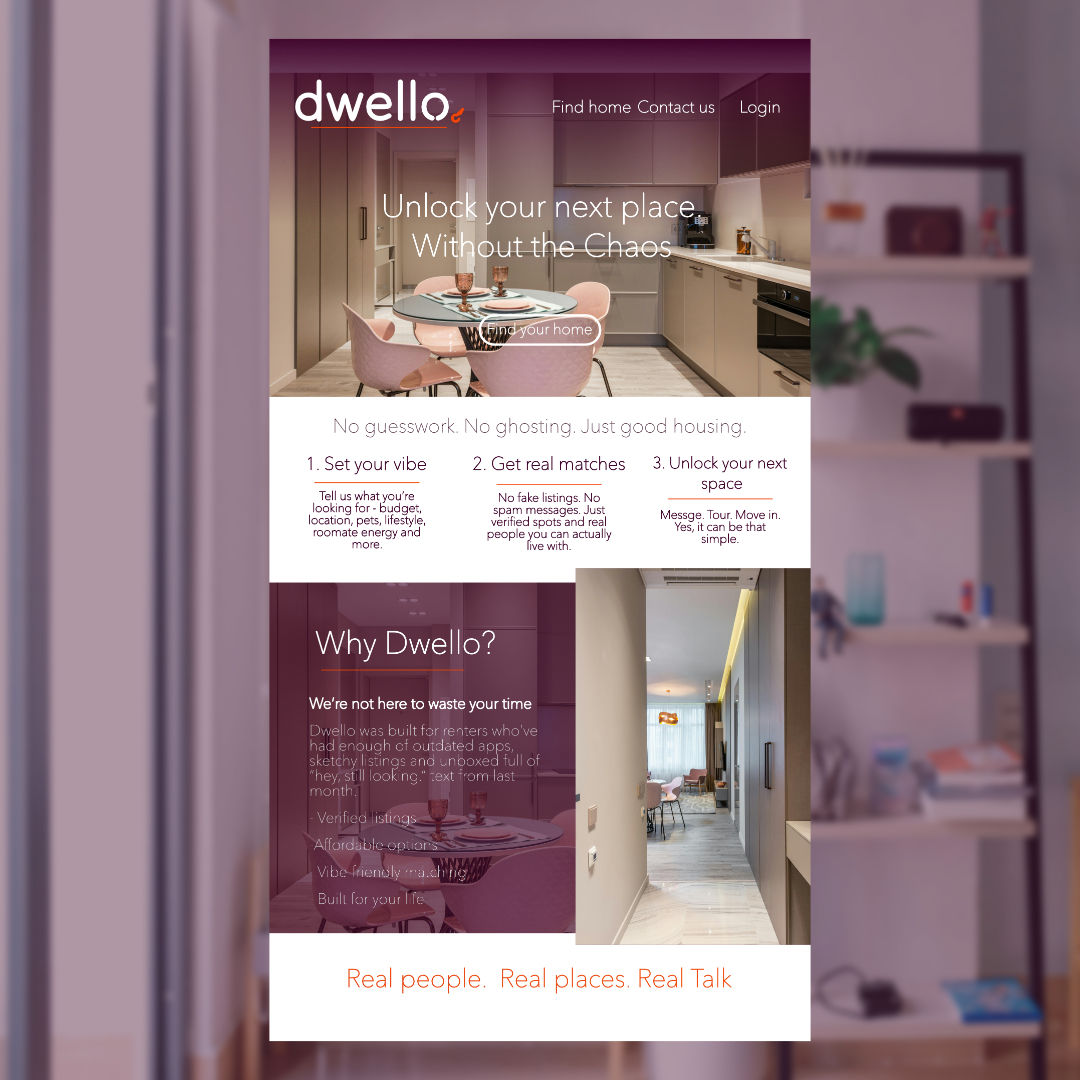 Dwello makes finding your first place feel less like a hassle and more like a glow-up. We connect young adults with clean, modern studio apartments that are thoughtfully designed to feel like home from day one. Built for early independence and city living, Dwello simplifies the rental process with curated listings that balance style, comfort, and practicality. By removing the stress, clutter, and uncertainty from apartment hunting, Dwello helps you step confidently into your first space—and the next chapter of your life.